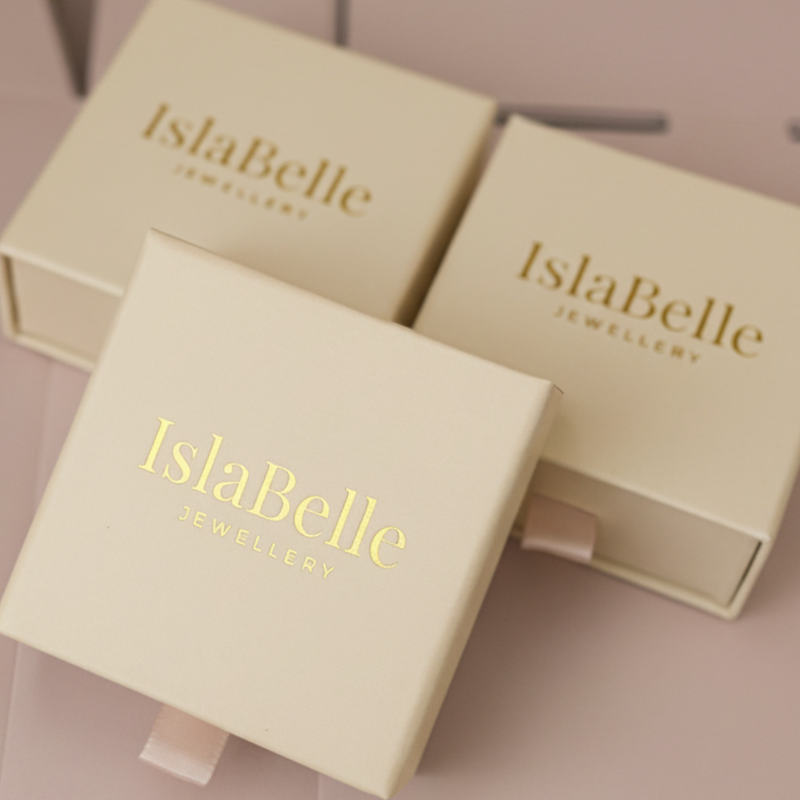 Your IslaBelle treasure arrives in a delightful branded box that feels more like a present than a parcel. Slide open the drawer-style keepsake box nestled inside, carefully wrapped in tissue paper, and you’ll find your jewellery alongside a velvet pouch filled with a care card and a polishing cloth. It’s our way of making sure every delivery feels like a celebration.