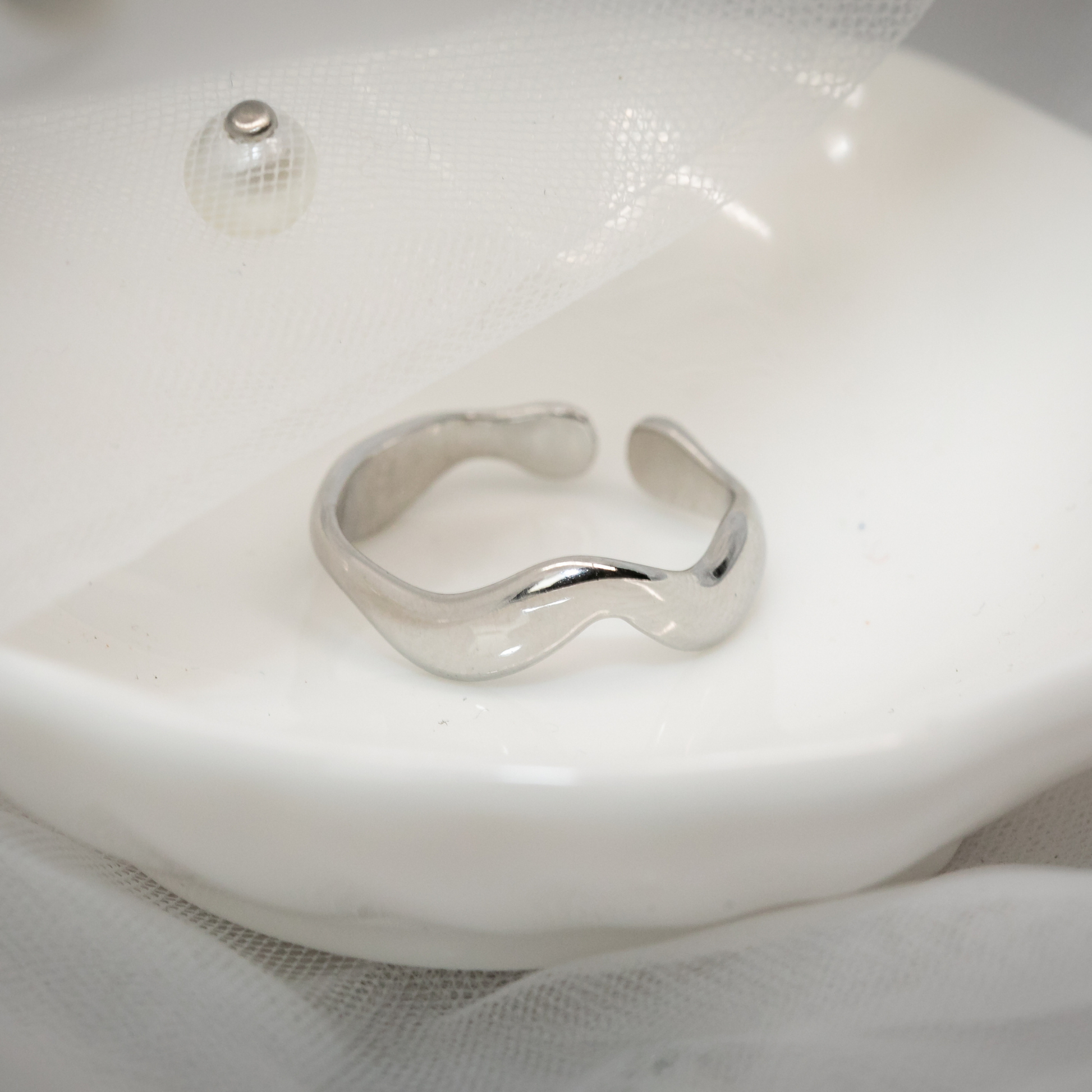 The silver wave ring embodies calm and grace through its fluid shape and soft reflective surface. A subtle statement piece that complements both casual and elevated looks.